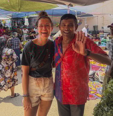 Over time, I’ve built close relationships with the local guides, families, and small community projects we visit on this trip. People like Naveen, who introduced me to indigenous farming on his family’s land, or Siri, who takes us through the bustling local market both welcomed me with so much warmth.