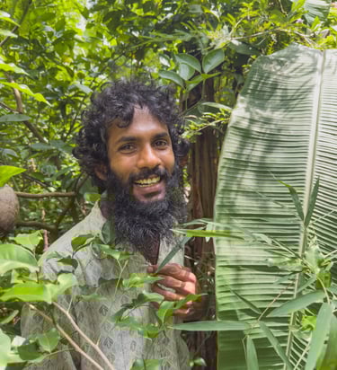 This morning, we’ll head to Ahangama to visit a small regenerative farm, run by Naveen, a passionate young Sri Lankan who will teach us all about indigenous farming. You’ll learn how they grow food in balance with nature, join a farm-to-table lunch, and taste dishes made straight from the garden.