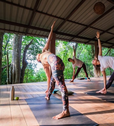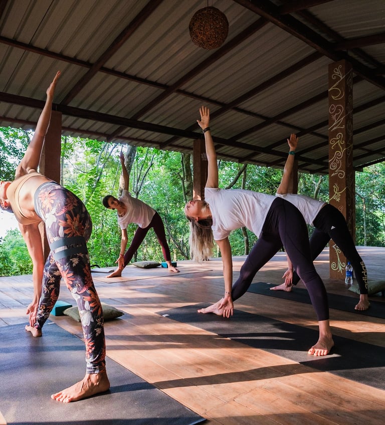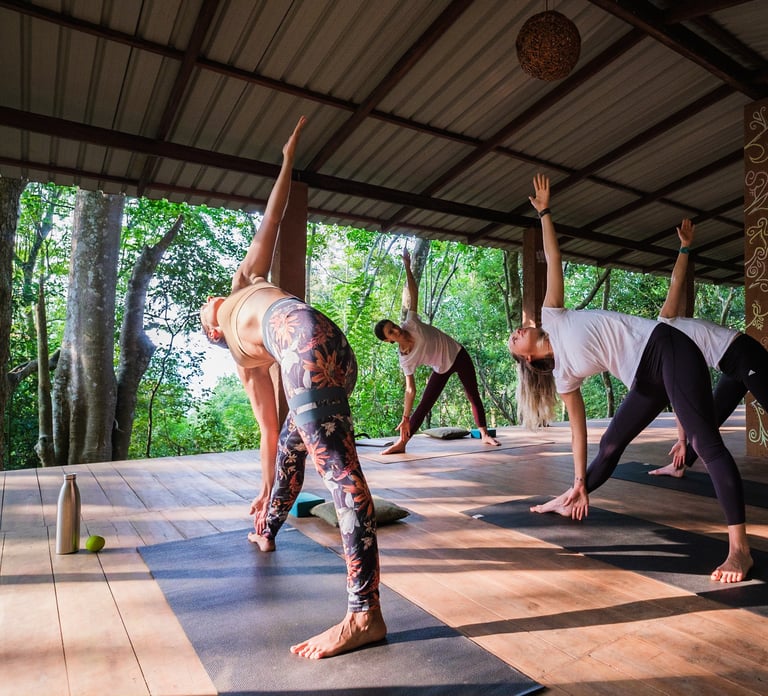 Our jungle mornings begin with gentle yoga and the sound of the forest waking up.