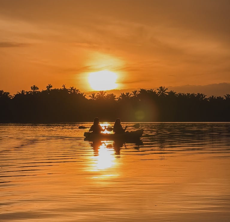 Afterwards we’ll embark on a sunset kayak safari with Lakith. The lagoon is full with wildlife and you'll get to see monkeys jumping through the trees, lizards hanging out in the mangroves and lots of different birds.